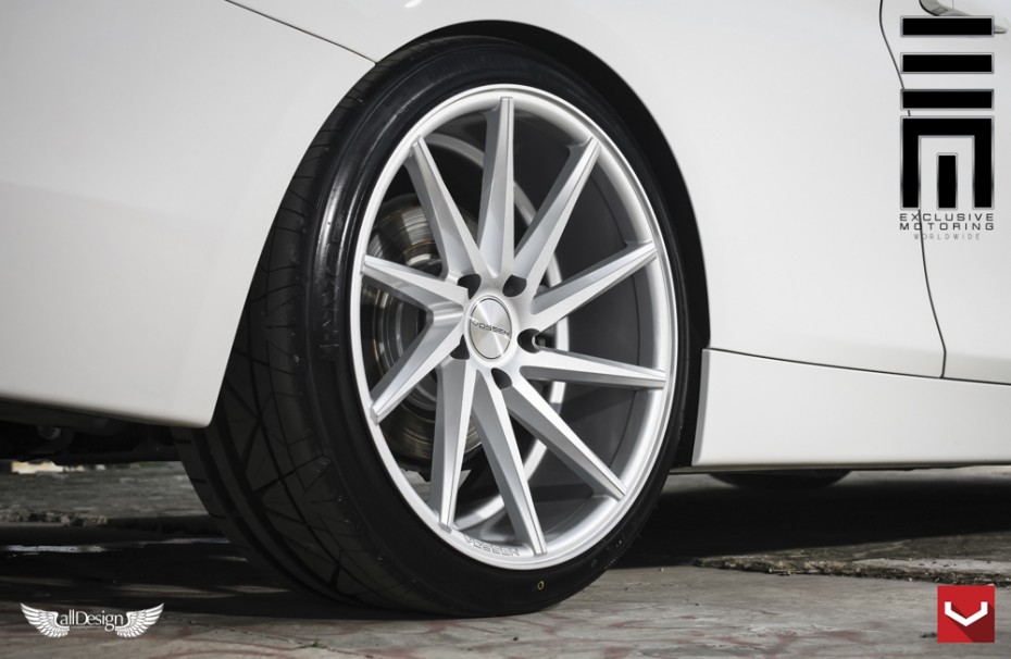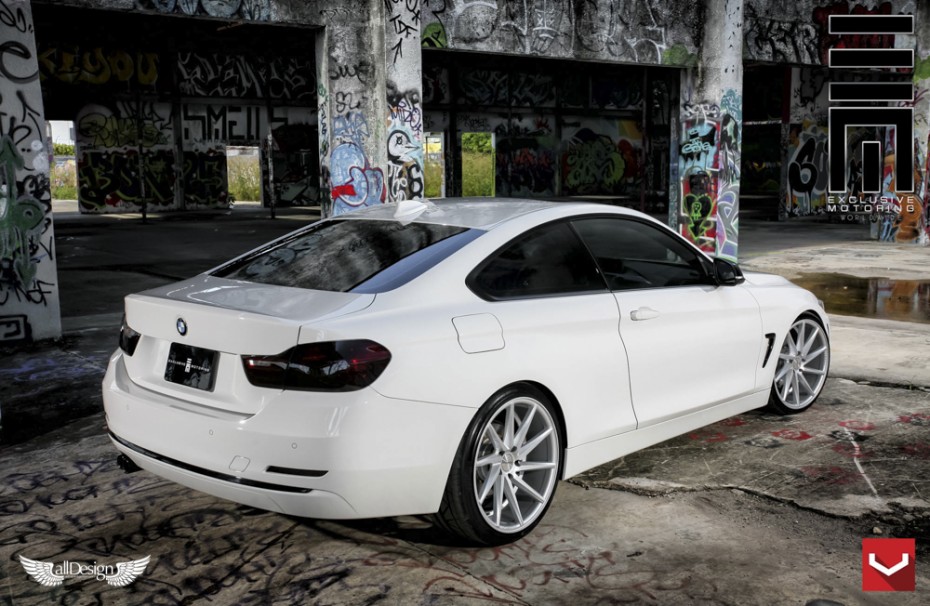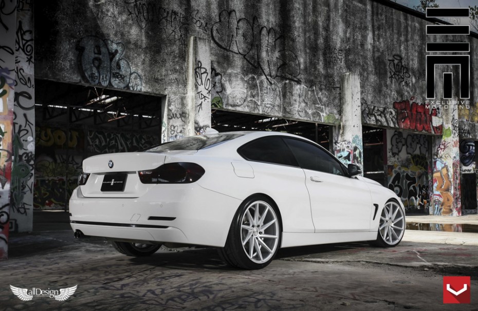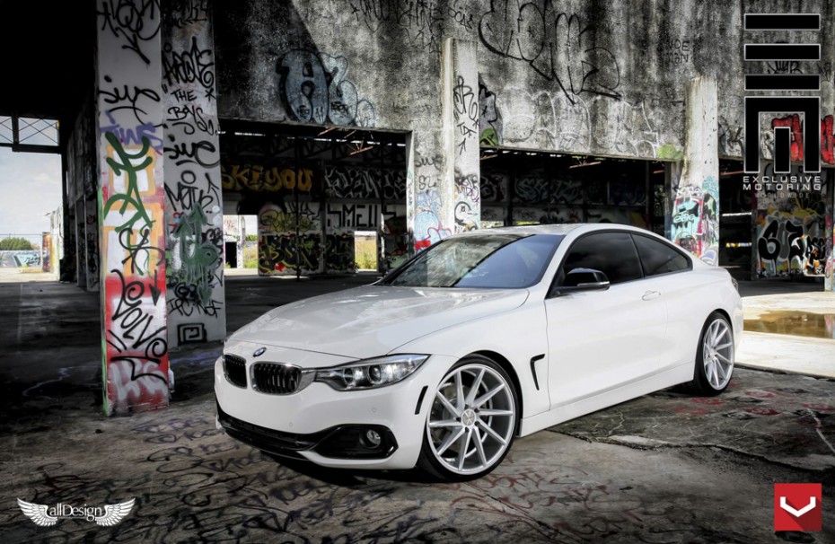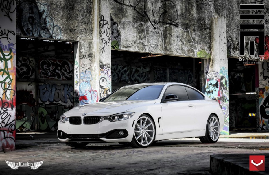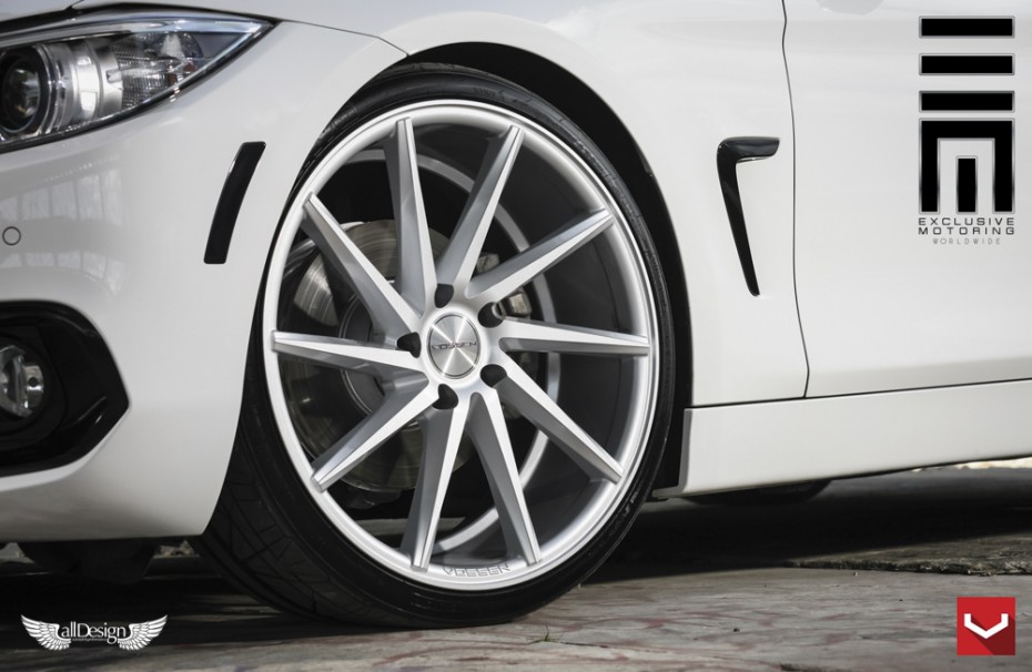 BMW Serie 4 Coupe (F32) con llantas cóncavas Vossen CVT direccionales (CV Series) en acabado Metallic Gloss Silver.